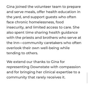 Thank you for acknowledging the St. Francis Inn and the incredible mission work they do to serve the community.